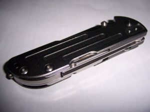 简单介绍一下,72mm的主刀,带linear locker和保险,附带有锁定的罐头刀和一字螺丝刀、安全带割刀,然后尾部还有玻璃锥。