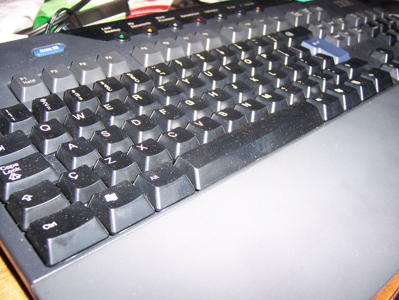 传说中的8815终于到手。如果说8115、8135代表的是戴尔的数码时尚的话,那么8815代表的就是ibm的商务稳重。沉着的外观设计,方便的快捷按键,类肤材质的掌托,无怪乎当年这款键盘被炒到几百。手感方面,有别于nmb版8115的硬,旭丽版的8135和国产的l100的软,这个旭丽产的8815可以用“绵”来形容。按键悄无声息,另有一番风味。虽说是欧版有部分按键错位,但是这个价格也算对得住观众了。