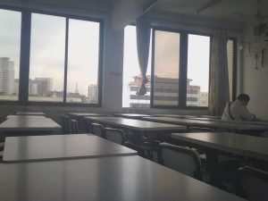 在门口找了准考证编号,找到教室号,直奔目的地~一到教室,只有两个勤奋的同学在复习-.-