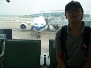 在候机厅。背后的就是准备乘坐的空客小客机,具体型号忘记了……
