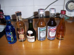 左起:Russkaya vodka咖啡味、红苹果味、薄荷味、梨味、蜂蜜香橼味、斯米诺夫伏特加蓝牌、波维罗瓦伏特加。
